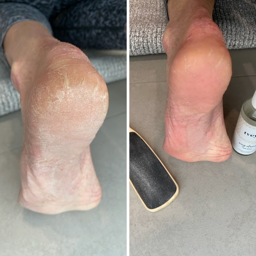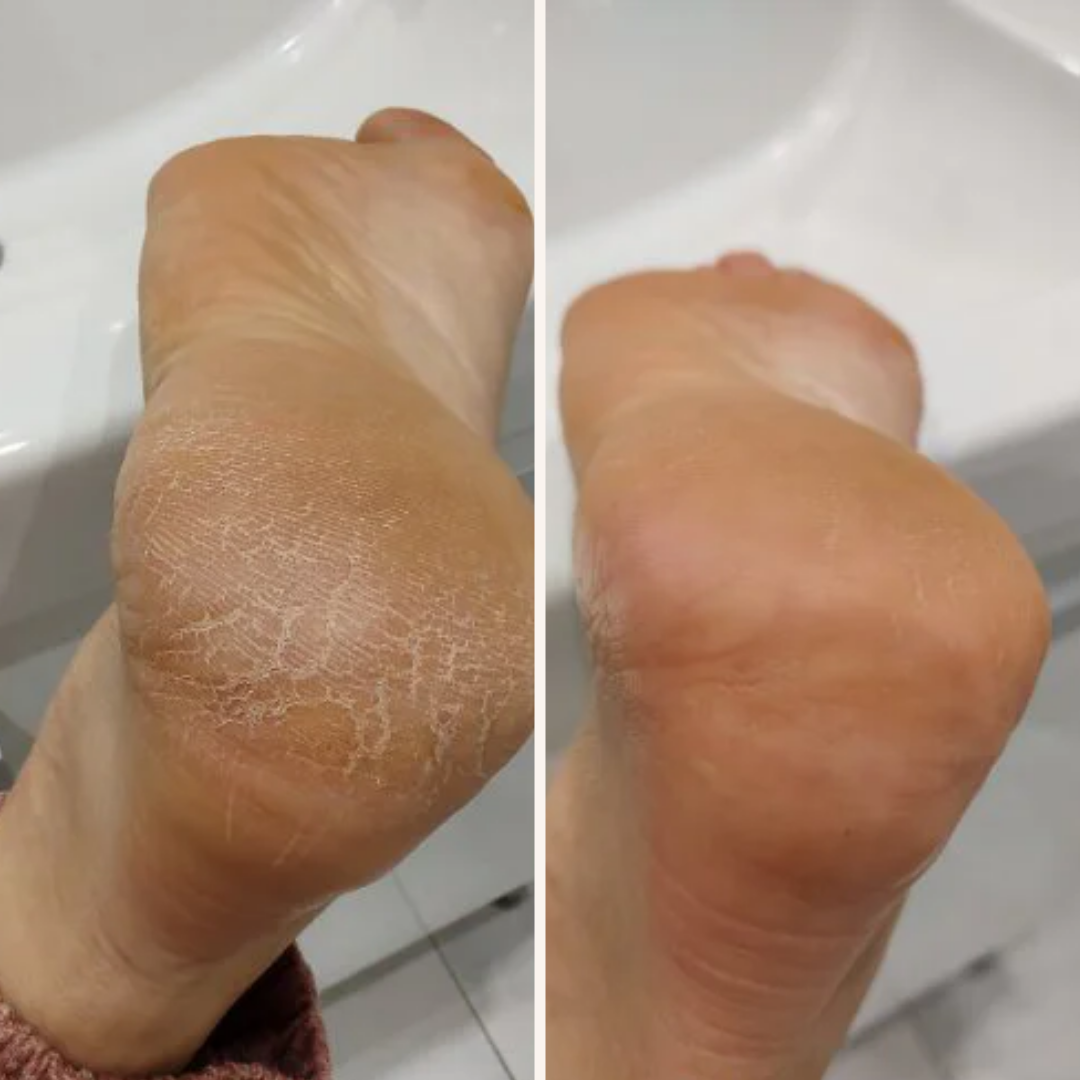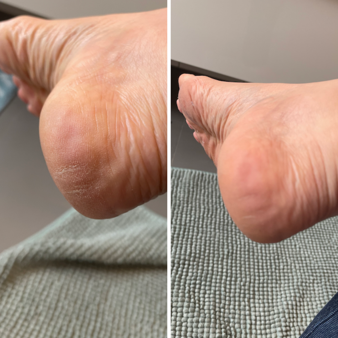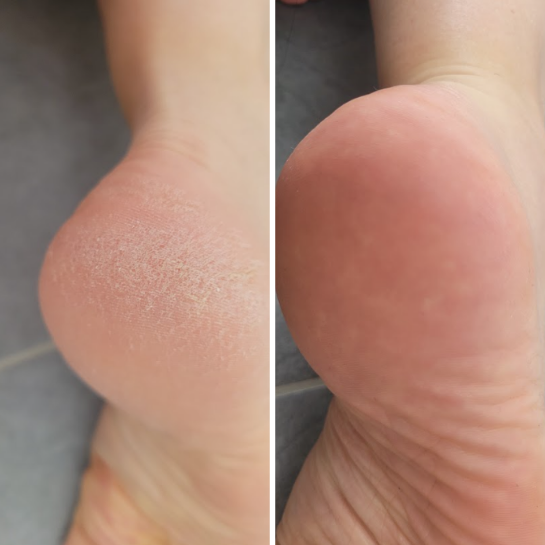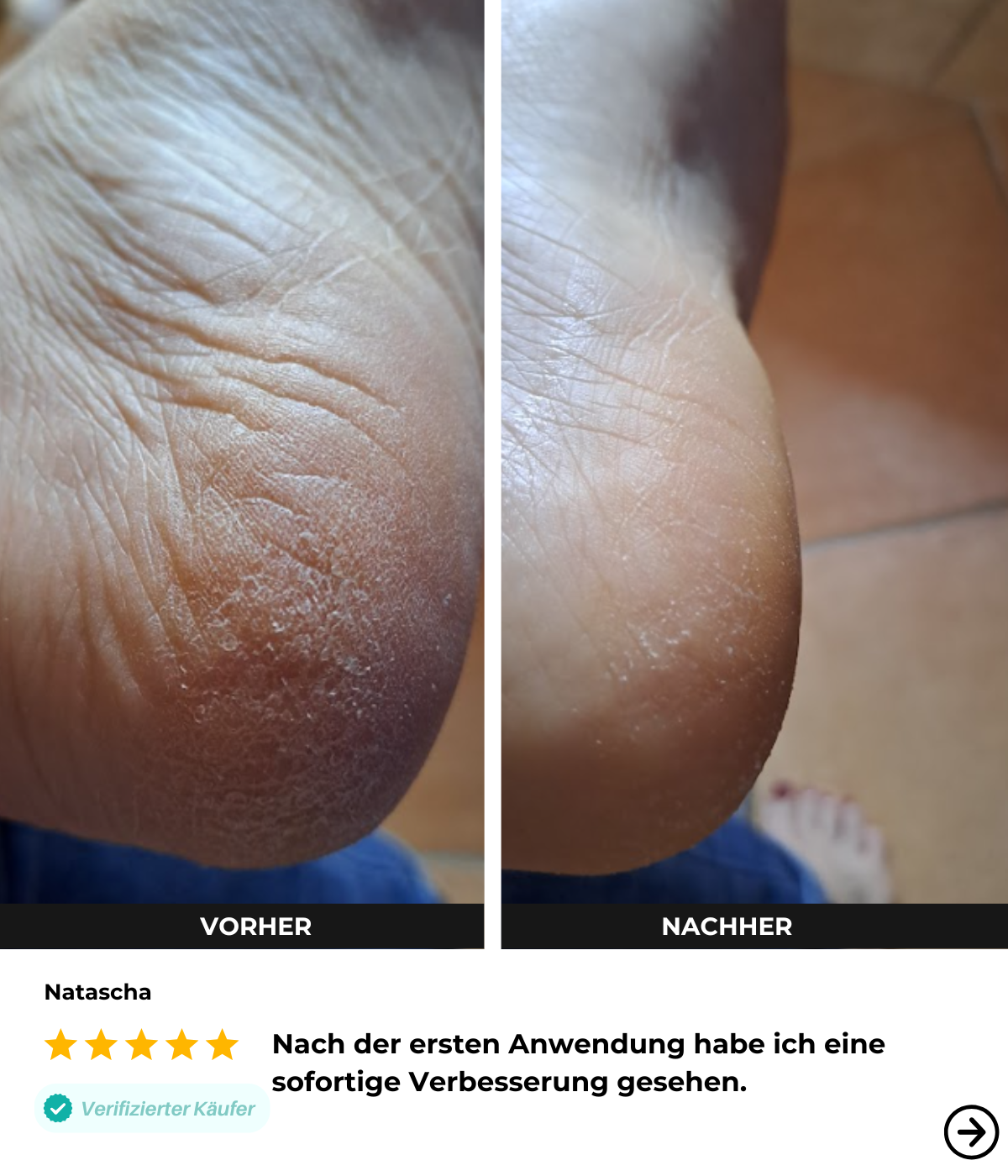 "Ich habe schon nach der dritten Anwendung gemerkt, wie die Hornhaut spürbar weniger wurde. Die Haut fühlt sich viel glatter an und sieht endlich wieder gepflegt aus."