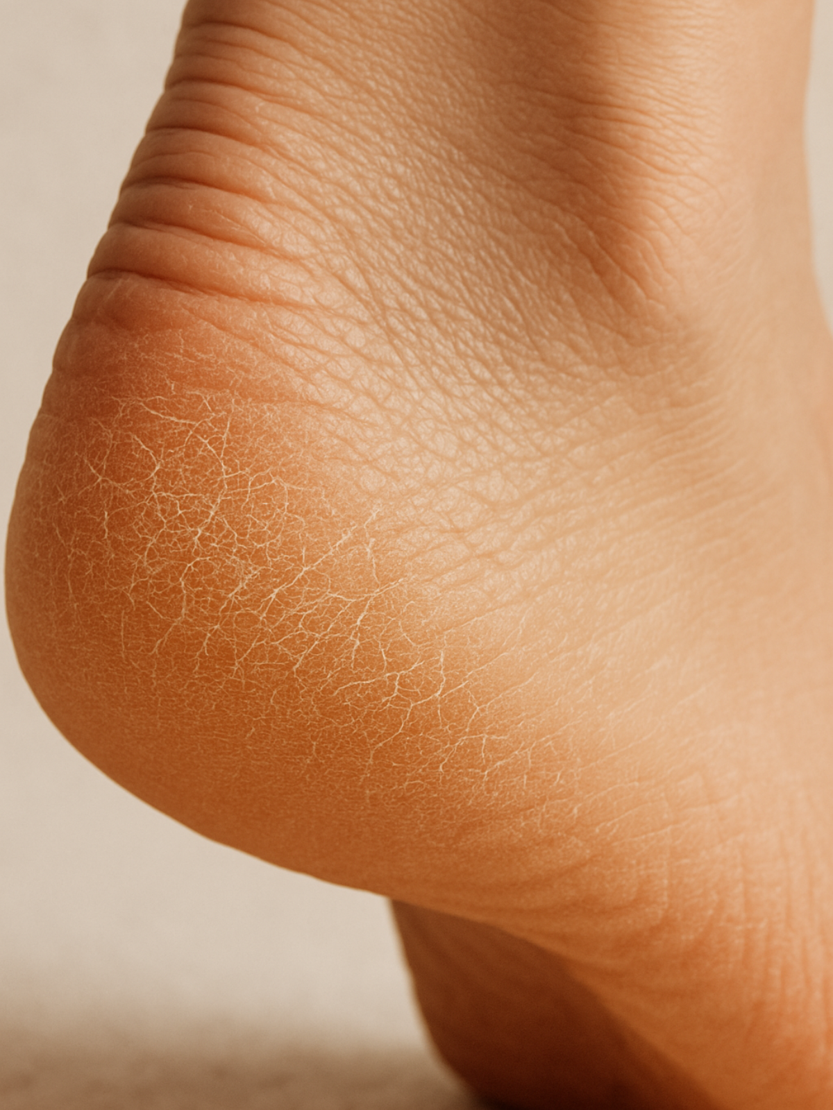 Hornhaut entsteht nicht nur durch äußeren Druck oder Reibung, sondern auch durch innere Einflüsse. Genetische Veranlagung, hormonelle Veränderungen (z. B. in den Wechseljahren) oder ein verlangsamter Zellstoffwechsel im Alter können die Haut austrocknen und die natürliche Abschuppung stören – so sammelt sich verstärkt verhornte Haut an.