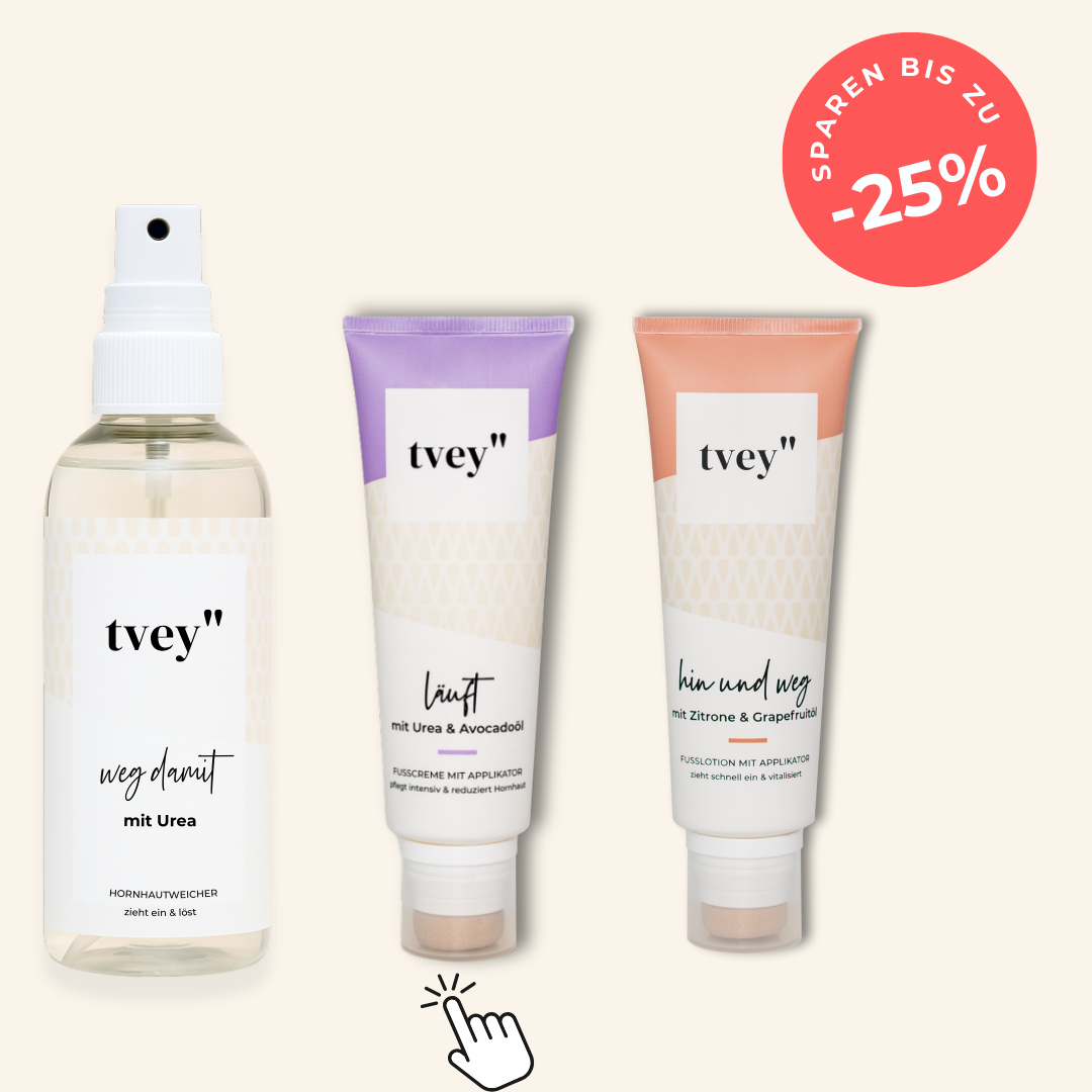 Du hast 30 Tage Zeit, das tvey Anti-Hornhaut-Set in deiner Pflegeroutine zu testen – und die sicht- und fühlbaren Ergebnisse selbst zu erleben. Wenn du nicht überzeugt bist: Geld zurück, ohne Wenn und Aber.