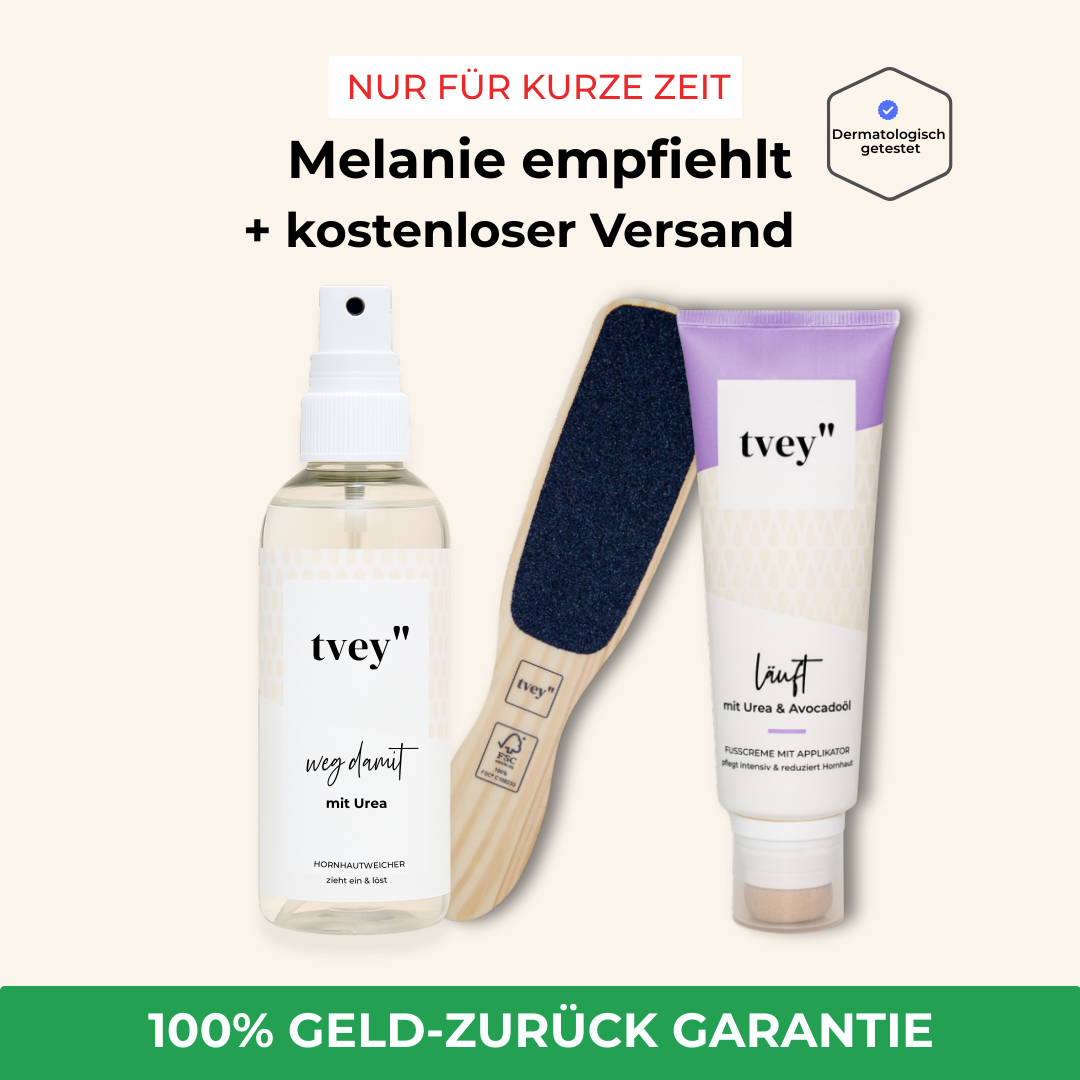 Entdecke die tvey Anti-Hornhaut-Lösungen – abgestimmt auf deine Hautbedürfnisse, Hornhautstärke und Pflegegewohnheiten.