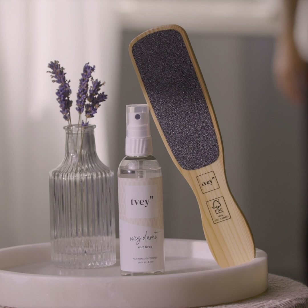 Mit dem Anti-Hornhaut Set löst du Hornhaut sanft, feilst sie schonend ab und pflegst deine Haut nachhaltig.